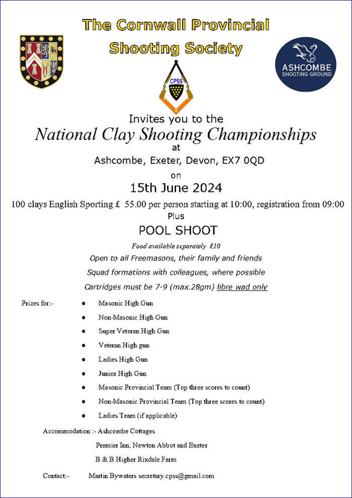 The Province of West Lancashire looks forward to welcoming Masonic shooters to the “Nationals”